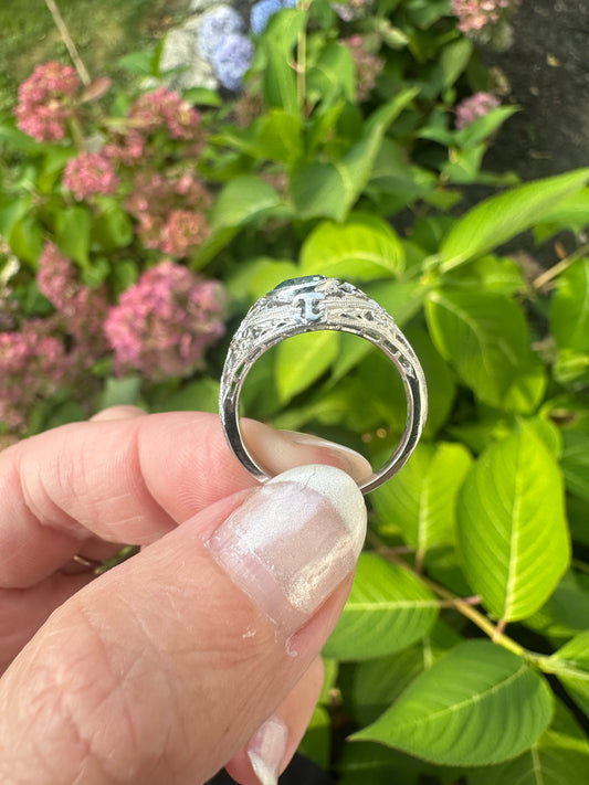 Handcrafted Platinum Teal Sapphire Engagement Ring