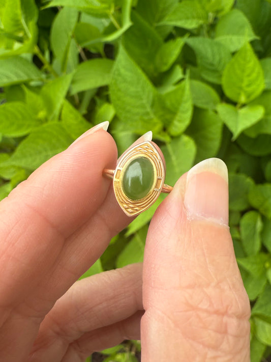 Antique 14k Yellow Gold Jade Stick Pin RIng